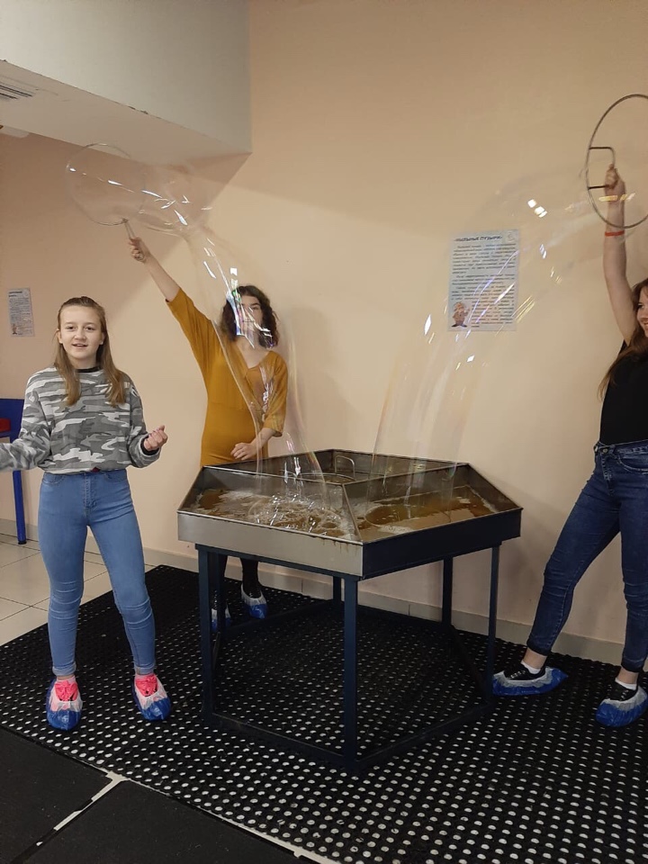 Ребята побывали в волшебном мире физики, природных явлений и оптических иллюзий. Увидели около 100 интереснейших экспонатов, которые можно было потрогать руками и попробовать в действии. Тёмная комната, зеркальный лабиринт, 3D голограммы, кровать йога с 5027 гвоздями, настоящая молния которую можно потрогать руками и огромные мыльные пузыри, привели детей в восторг!