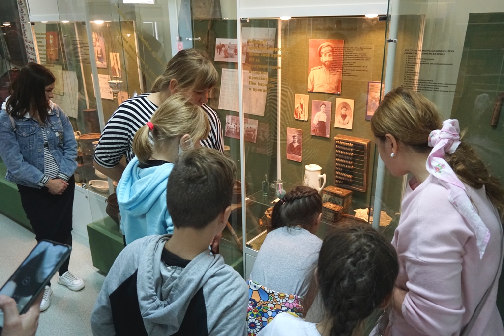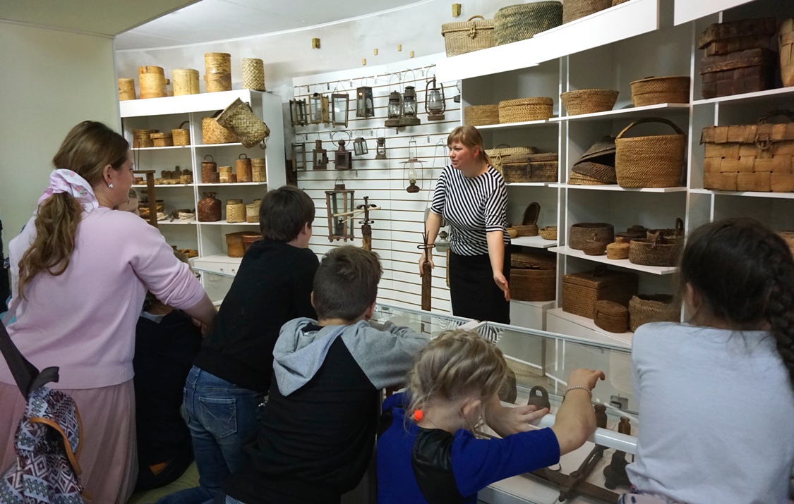 В музее истории села Сизьмы внимание детей привлекли предметы старины - старый печатный станок, изделия из бересты, необычные школьные парты, за которыми сидели дети предшествующих поколений.