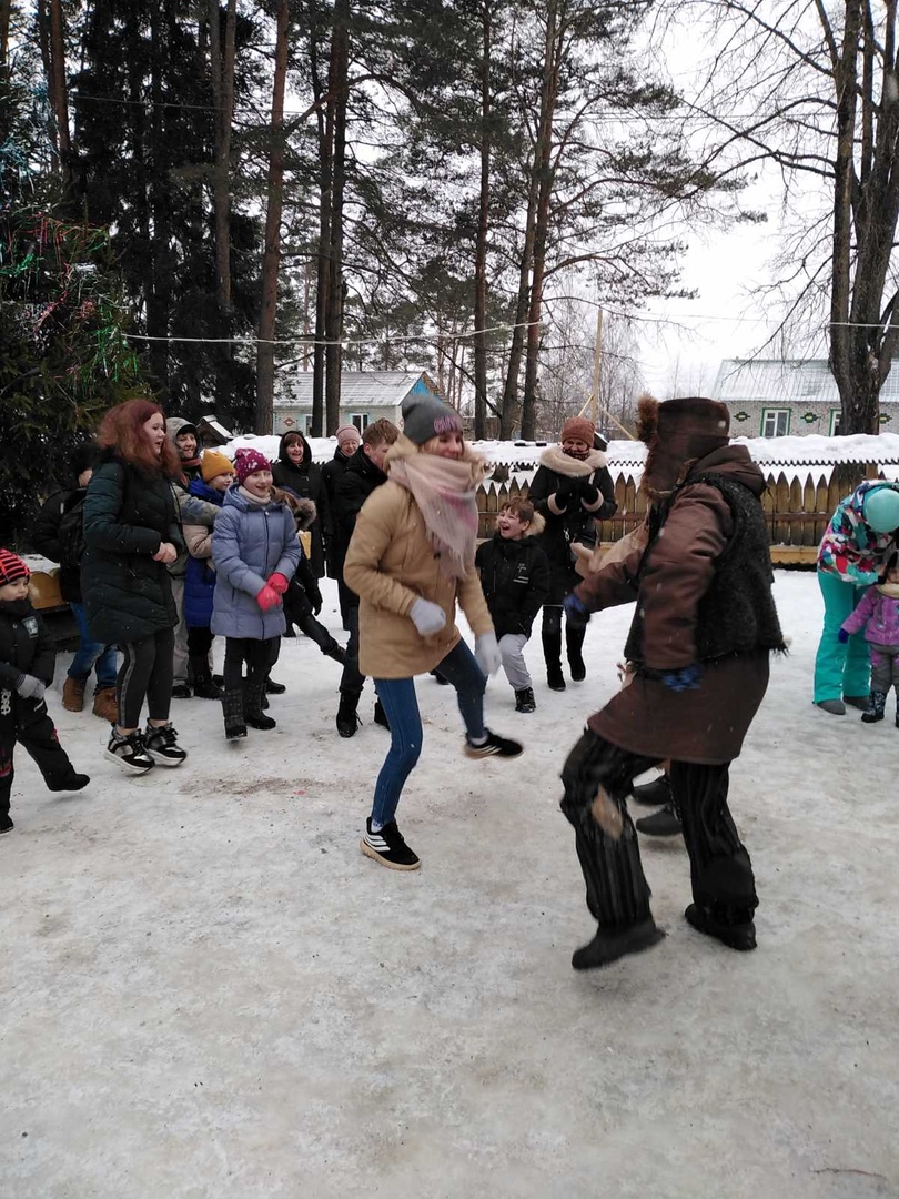 Новогодние посиделки не обошлись и без Деда Мороза, спокойную домашнюю обстановку разбавил мастер перевоплощения – веселый домовик шишок, он подарил ребятам бурю ярких эмоций. Дуняша проводила гостей по сказочной тропе прямо во владения Бабушки Яги на тридесятую поляну. А чтобы все присутствующие почувствовали дух сказки, шум и веселье Баба Яга и Леший устроили незабываемые испытания в зимнем лесу, провели занимательные конкурсы, игры и пляски со сказочными героями.