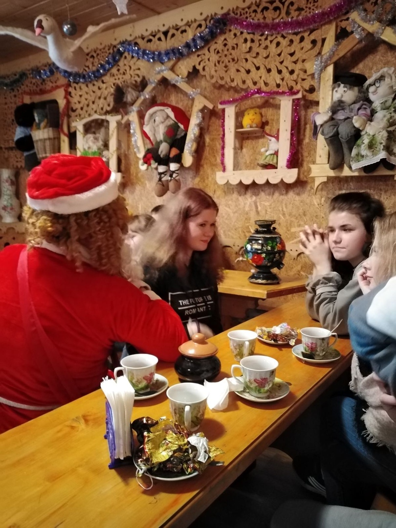 Удивительное приключение началось с чайной Бабы Яги и сказочного музея, где взрослых и детей гостеприимно встретили хозяйки Марья Искусница и Дуняша. Там в атмосфере сказки и чуда под душистый чай из настоящего русского самовара и пироги «с пылу, с жару» гости услышали рассказы о том, что же происходит в дивном селе в зимнюю пору и почему Баба Яга поселилась именно здесь.